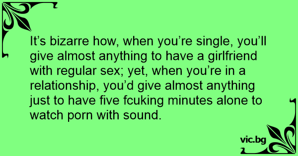 It’s bizarre how, when you’re single, you’ll give almost anything to have a girlfriend with regular sеx; yet, when you’re in a relationship, you’d give almost anything just to have five fсuкing minutes alone to watch роrn with sound.