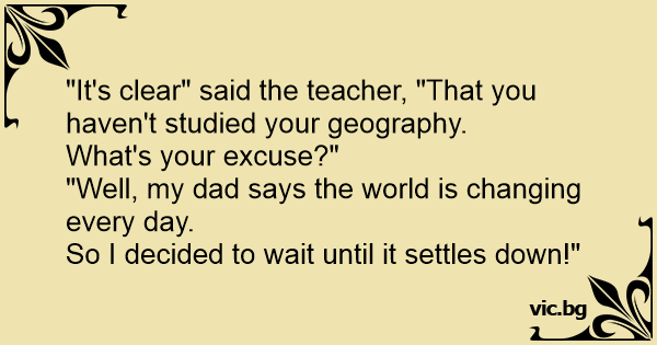 "It's clear" said the teacher, "That you haven't studied your geography.