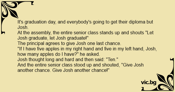And the entire senior class stood up and shouted, "Give Josh another chance. Give Josh another chance!"