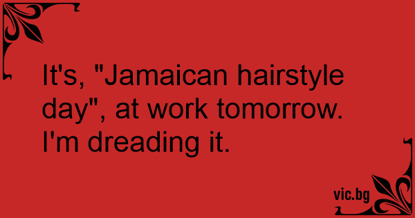 It's, "Jamaican hairstyle day", at work tomorrow. I'm dreading it.