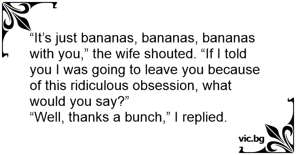 “It’s just bananas, bananas, bananas with you,” the wife shouted. “If I told you I was going to leave you because of this ridiculous obsession, what would you say?”