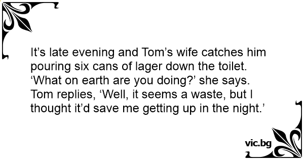 It’s late evening and Tom’s wife catches him pouring six cans of lager down the toilet.