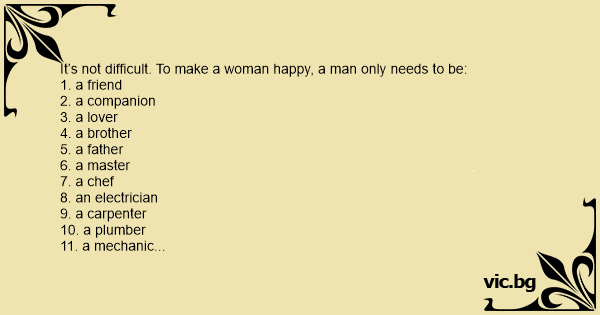 It’s not difficult. To make a woman happy, a man only needs to be: