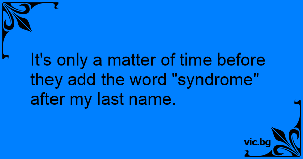 Въпрос на време е да добавят "Синдром на" пред имената ми ...