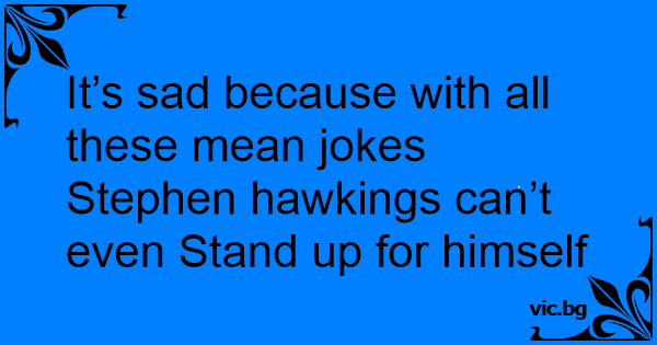 It’s sad because with all these mean jokes Stephen hawkings can’t even Stand up for himself