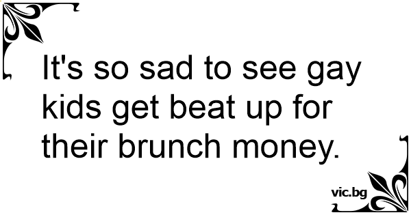 It's so sad to see gаy kids get beat up for their brunch money.