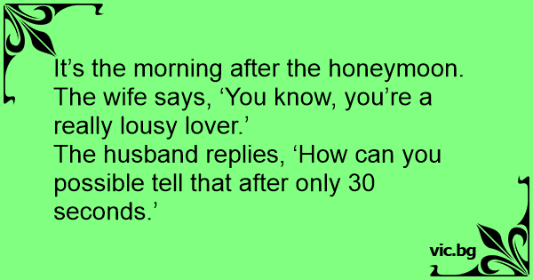 The husband replies, ‘How can you possible tell that after only 30 seconds.’