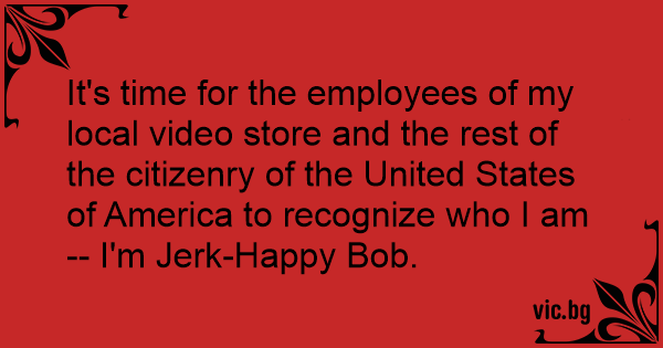 It's time for the employees of my local video store and the rest of the citizenry of the United States of America to recognize who I am -- I'm Jеrк-Happy Bob.