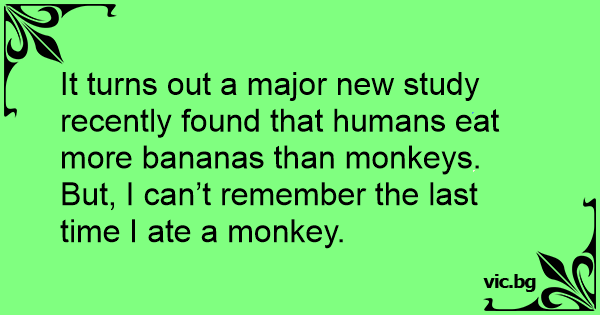 It turns out a major new study recently found that humans eat more bananas than monkeys. But, I can’t remember the last time I ate a monkey.