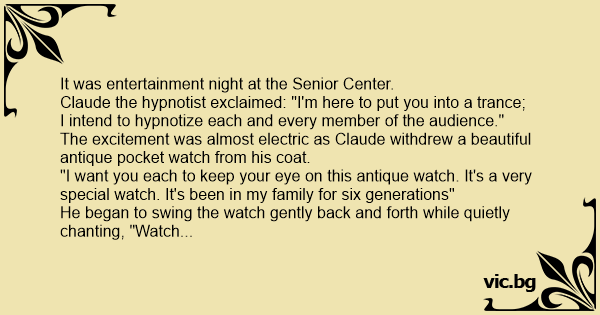 He began to swing the watch gently back and forth while quietly chanting, "Watch the watch, watch the watch, watch the watch..."