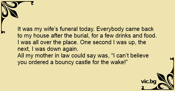 All my mother in law could say was, “I can’t believe you ordered a bouncy castle for the wake!”