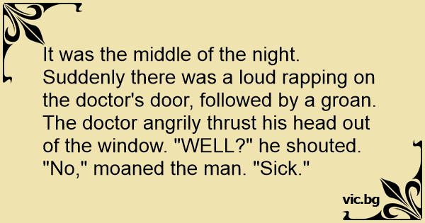 It was the middle of the night. Suddenly there was a loud rapping on the doctor's door, followed by a groan.