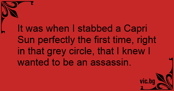 It was when I stabbed a Capri Sun perfectly the first time, right in that grey circle, that I knew I wanted to be an assassin.