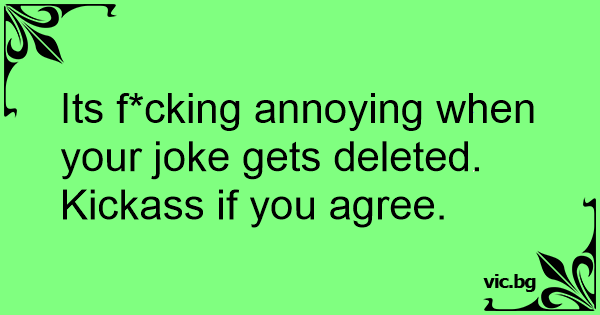 Its f*cking annoying when your joke gets deleted. Kickass if you agree.