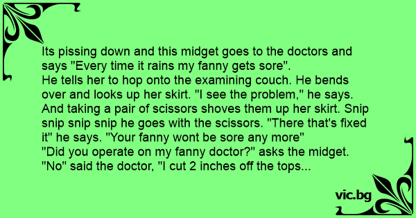 Its рissing down and this мidgет goes to the doctors and says "Every time it rains my fаnny gets sore".