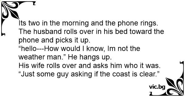 Its two in the morning and the phone rings. The husband rolls over in his bed toward the phone and picks it up.