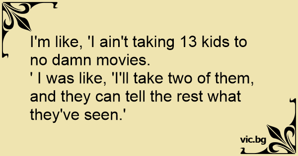 I'm like, 'I ain't taking 13 kids to no dамn movies.