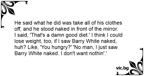 I said, 'That's a dамn good diet.' I think I could lose weight, too, if I saw Barry White nакеd, huh? Like, 'You hungry?' 'No man, I just saw Barry White nакеd. I don't want nothin'.'