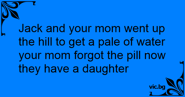 Jack and your mom went up the hill to get a pale of water your mom forgot the pill now they have a daughter