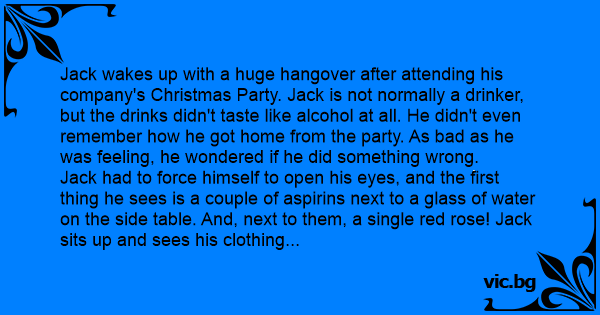 Bill wakes up at home with a huge hangover. He forces himself to open his eyes, and the first thing he sees is a couple of aspirins and a glass of water on the side table.