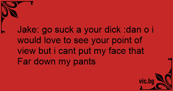 Jake: go suск a your diск :dan o i would love to see your point of view but i cant put my face that