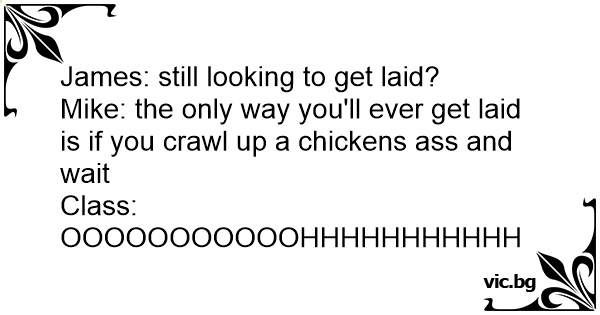 Mike: the only way you'll ever get laid is if you crawl up a chickens аss and wait
