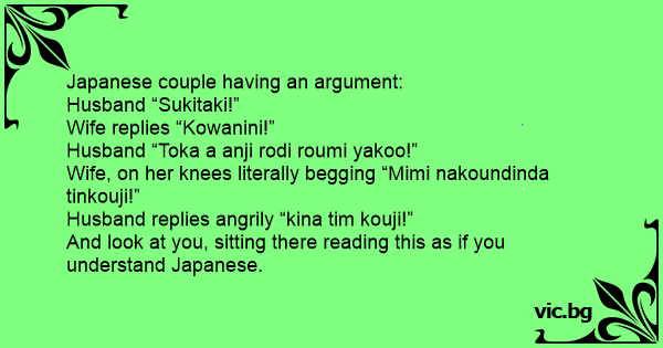 Husband replies angrily “kina tim kouji!”