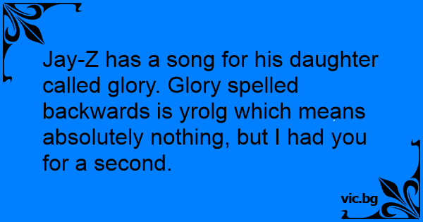 Jay-Z has a song for his daughter called glory. Glory spelled backwards is yrolg which means absolutely nothing, but I had you for a second.
