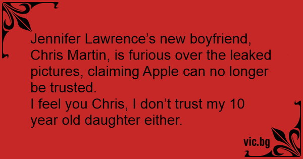 Jennifer Lawrence’s new boyfriend, Chris Martin, is furious over the leaked pictures, claiming Apple can no longer be trusted.