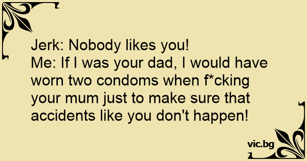 Me: If I was your dad, I would have worn two condoms when f*cking your mum just to make sure that accidents like you don't happen!