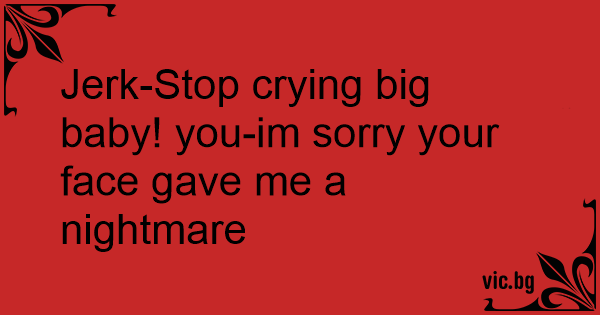 Jеrк-Stop crying big baby! you-im sorry your face gave me a nightmare