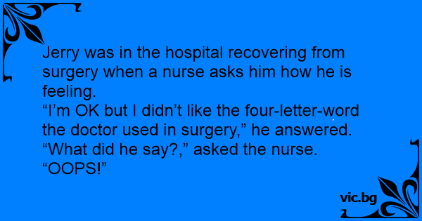 Jerry was in the hospital recovering from surgery when a nurse asks him how he is feeling.