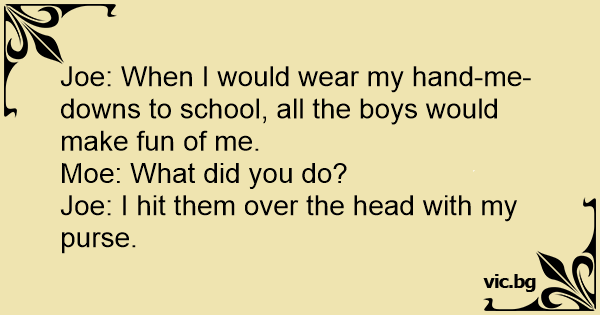 Joe: When I would wear my hand-me-downs to school, all the boys would make fun of me.