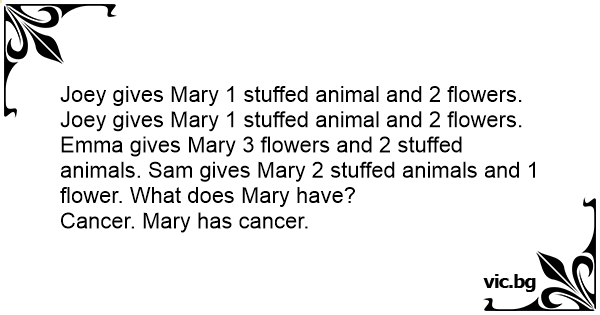 Joey gives Mary 1 stuffed animal and 2 flowers.