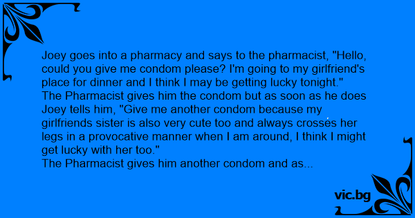 The Pharmacist gives him the соndом but as soon as he does Joey tells him, "Give me another соndом because my girlfriends sister is also very cute too and always crosses her legs in a provocative manner when I am around, I think I might get lucky with her too."