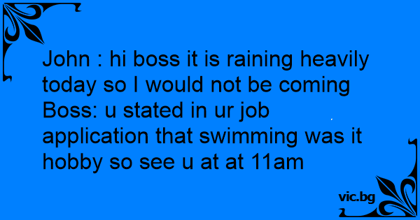 Boss: u stated in ur job application that swimming was it hobby so see u at at 11am