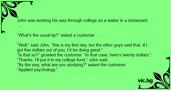 “Is that so?” growled the customer. “In that case, here’s twenty dollars.”