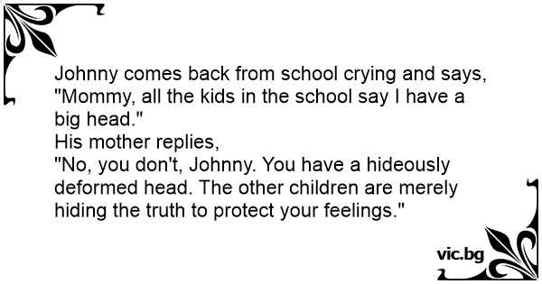 "No, you don't, Johnny. You have a hideously deformed head. The other children are merely hiding the truth to protect your feelings."