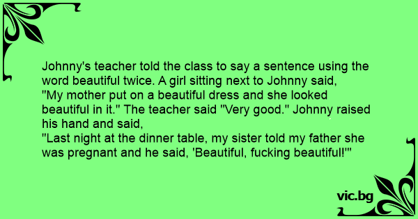 Johnny's teacher told the class to say a sentence using the word beautiful twice. A girl sitting next to Johnny said,