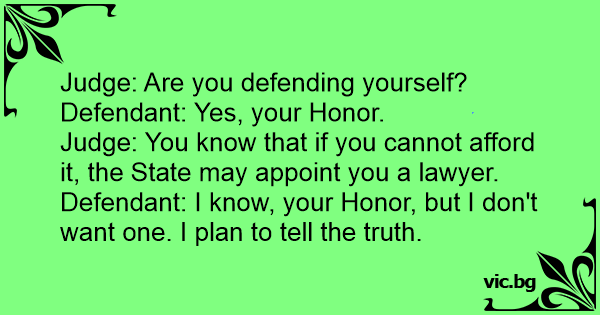 Defendant: I know, your Honor, but I don't want one. I plan to tell the truth.