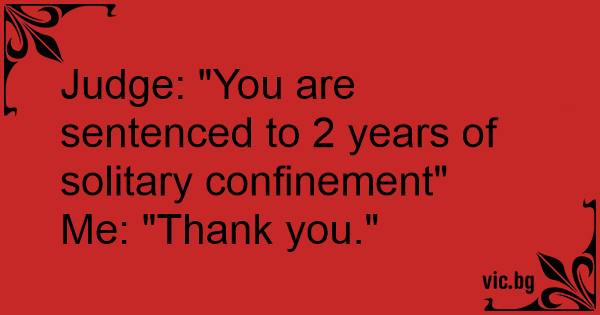 Judge: "You are sentenced to 2 years of solitary confinement"