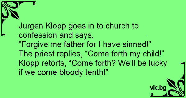 The priest replies, “Come forth my child!” Klopp retorts, “Come forth? We’ll be lucky if we come вlооdy tenth!”