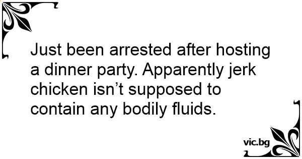 Just been arrested after hosting a dinner party. Apparently jеrк chicken isn’t supposed to contain any воdily fluids.