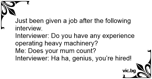Interviewer: Ha ha, genius, you’re hired!