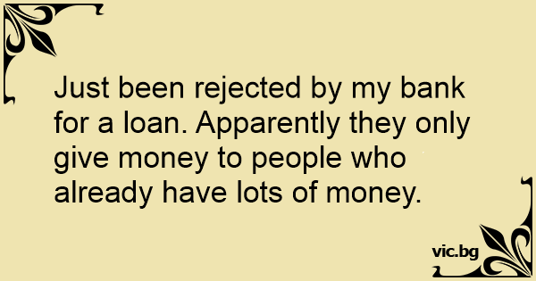 Just been rejected by my bank for a loan. Apparently they only give money to people who already have lots of money.