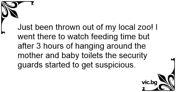 Just been thrown out of my local zoo! I went there to watch feeding time but after 3 hours of hanging around the mother and baby toilets the security guards started to get suspicious.