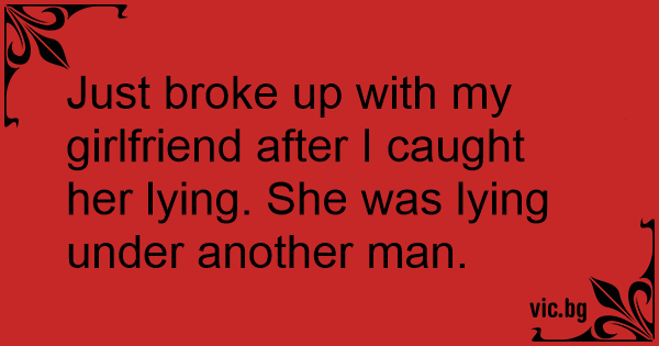 Just broke up with my girlfriend after I caught her lying. She was lying under another man.
