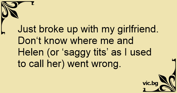 Just broke up with my girlfriend. Don‘t know where me and Helen (or ‘saggy тiтs’ as I used to call her) went wrong.