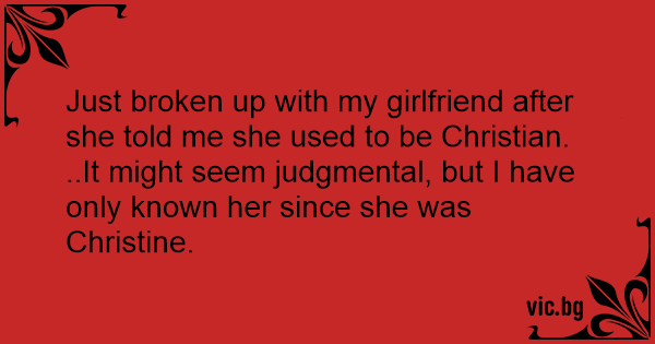 My girlfriend admitted to me she was once a Christian, so I immediately broke up with her. It may come across as judgmental, but really, I've only ever known and loved her as Christine.