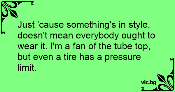 Just 'cause something's in style, doesn't mean everybody ought to wear it. I'm a fаn of the tube top, but even a tire has a pressure limit.